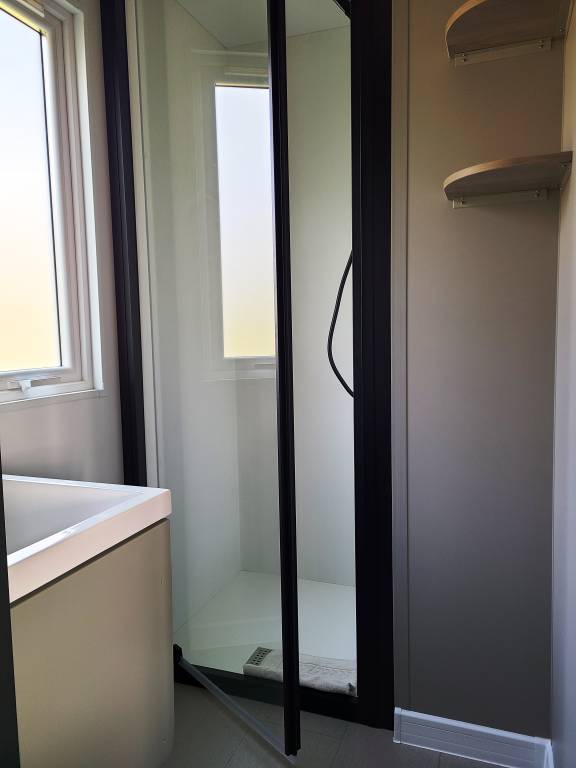 Salle de douche, cabinet de toilettes avec lavabo.